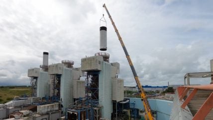 Fellside Heat and Power Plant engaged Ainscough for the planned removal of sections of the tall chimney stack.